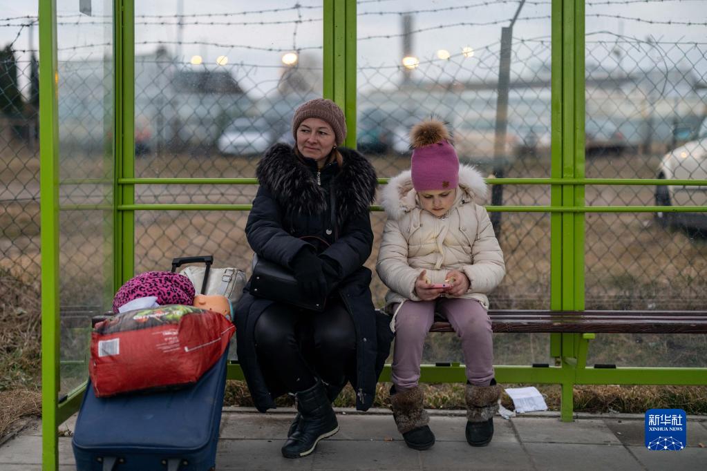 2月26日,一名乌克兰女孩抵达波兰边境关口梅迪卡。 联合国官员26日说,已有超过12万名乌克兰人前往邻国避难。 新华社记者 周楠 摄