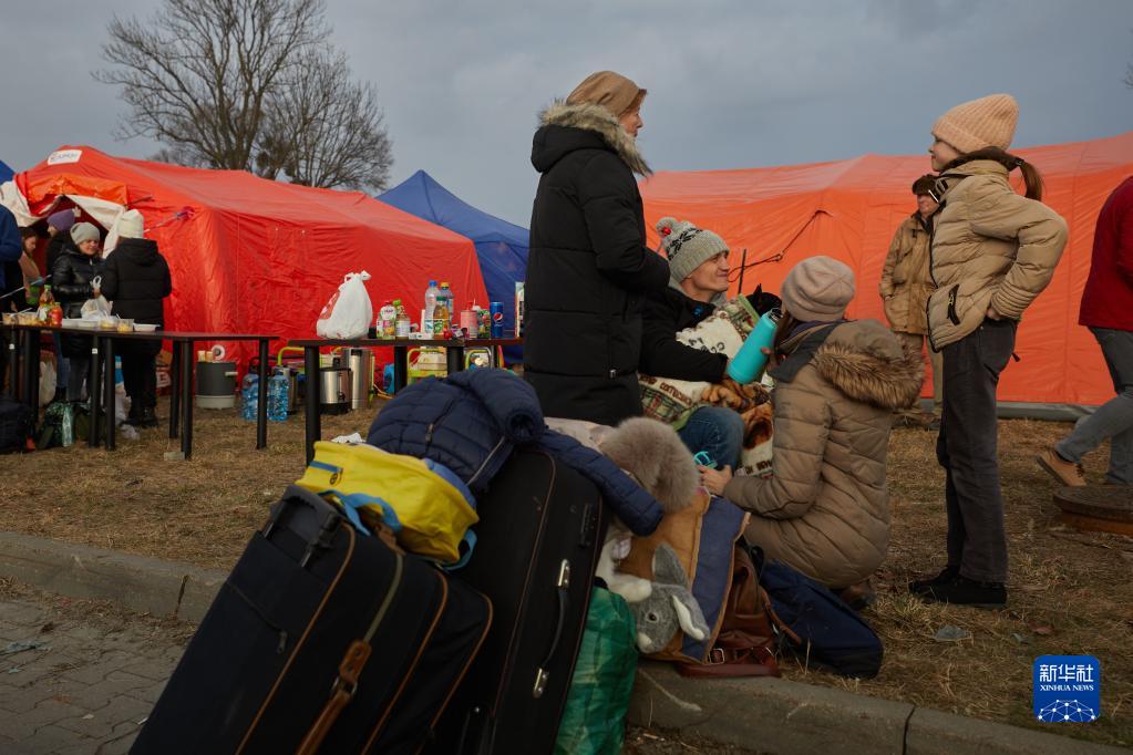2月26日,乌克兰人抵达波兰边境关口梅迪卡。 联合国官员26日说,已有超过12万名乌克兰人前往邻国避难。 新华社记者 周楠 摄
