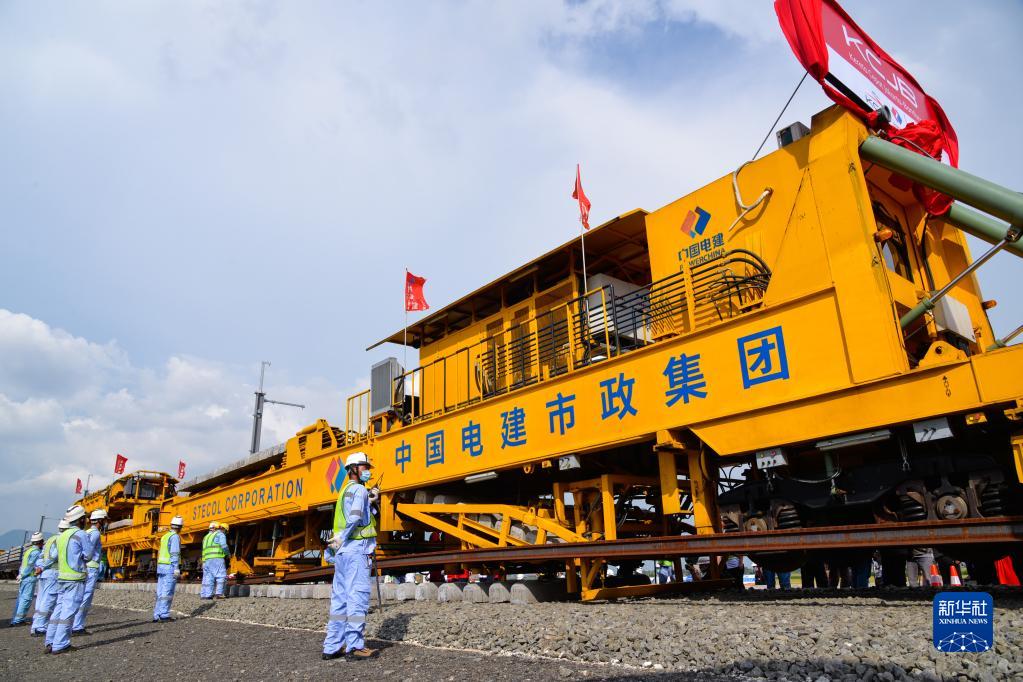 4月20日,工作人员在印度尼西亚万隆雅万高铁铺轨施工现场作业。 20日,随着第一根500米长轨在印度尼西亚西爪哇省万隆县雅万高铁动车走行线顺利铺设,雅万高铁开始启动铺轨施工。雅万高铁是“一带一路”建设和中印尼两国务实合作的标志性项目。 新华社记者 徐钦 摄