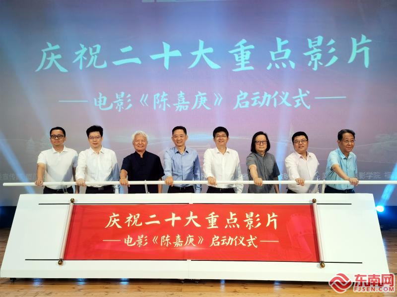 领导嘉宾共同启动电影《陈嘉庚》(东南网记者 刘玮 摄) 东南网6月30日讯(本网记者 吴开兴 刘玮 李奇 陈淼淼)6月30日,在“福影耀八闽 喜迎二十大”系列活动启动盛典后,福建重量级电影《陈嘉庚》举办了发布会。导演黄健中携电影《陈嘉庚》主创登台,详细介绍了电影创作情况。 出生于厦门集美的爱国华侨陈嘉庚,先后创办了小学、中学、大学共计上百所,最让世人瞩目的就是他亲手创办了厦门大学和集美大学两所高校。他一生为辛亥革命、民族教育、抗日战争、解放战争、新中国的建设作出了巨大贡献。