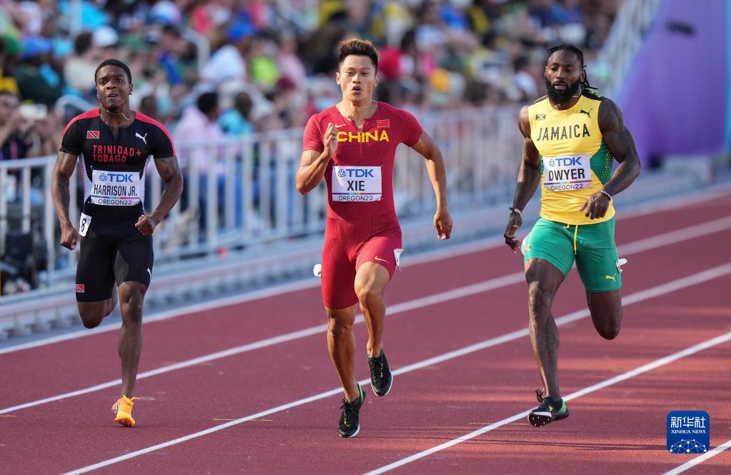 7月18日,谢震业(中)在预赛中。新华社记者 王迎 摄