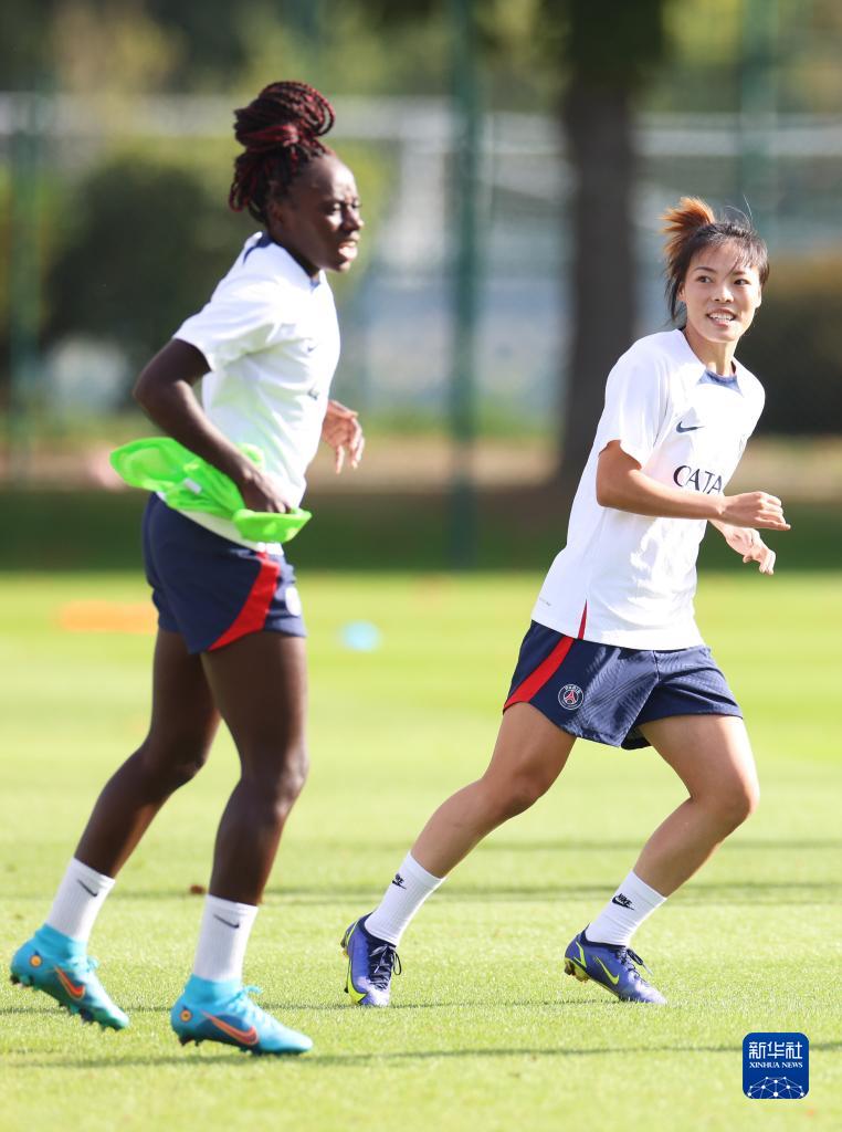 李梦雯参加巴黎圣日耳曼女足赛前训练