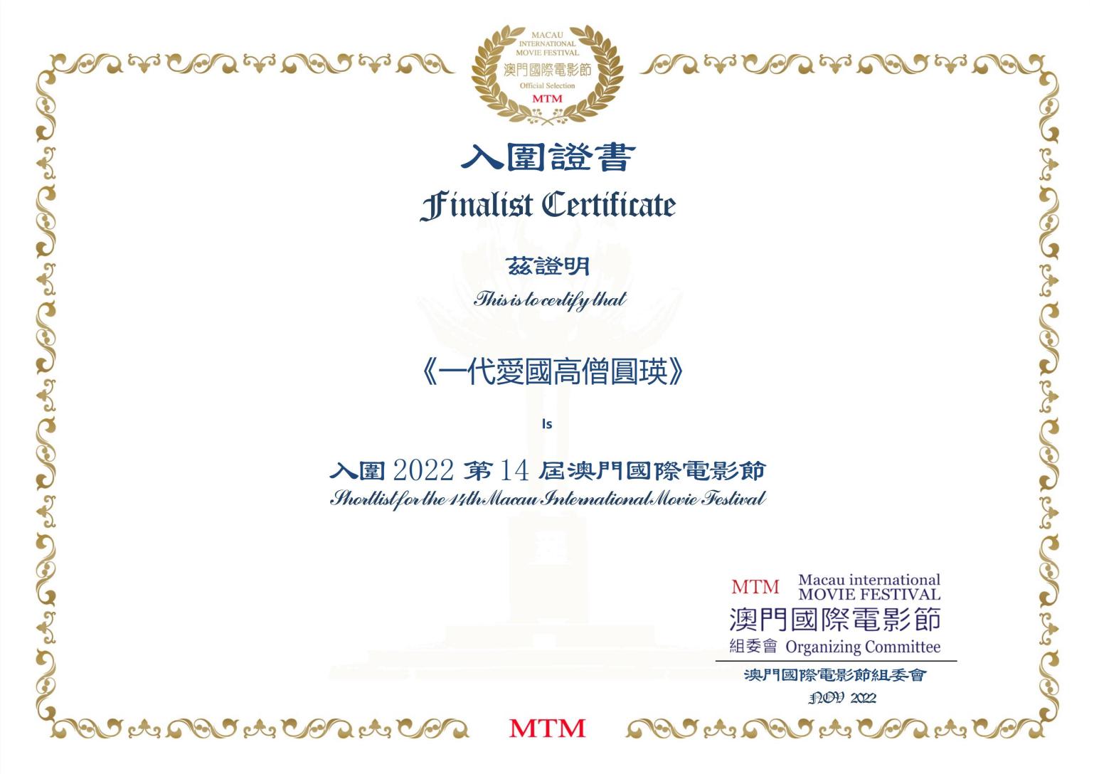 东南网11月15日讯(本网记者 吴开兴)11月15日,2022第14届澳门国际电影节公布了入围名单,由福建导演王友编剧、执导的纪录电影《一代爱国高僧圆瑛》入围主竞赛单元名单。