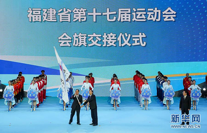 这是会旗交接仪式。下一届省运会将于2026年在三明市举办。新华网 肖和勇 摄