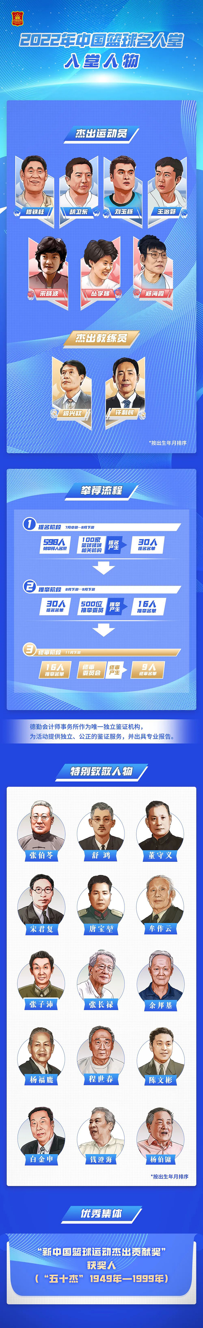 经过终审委员会举荐,名人堂委员会审定,2022年中国篮球名人堂举荐入堂人物确定(按出生年月排序):
