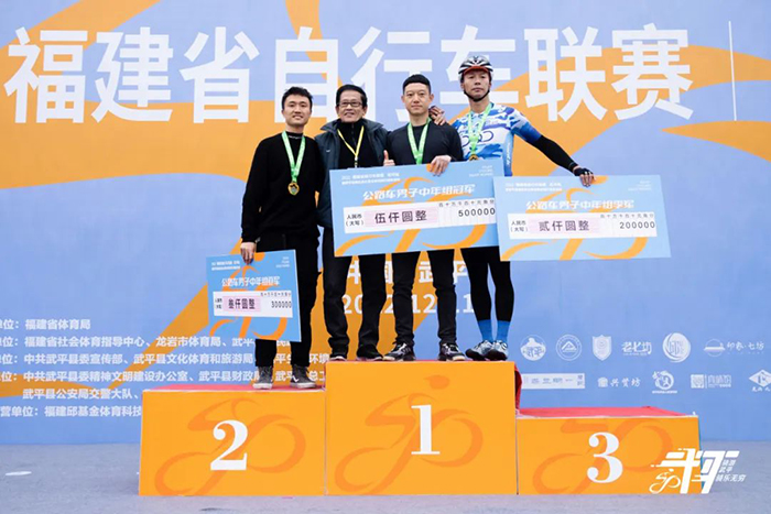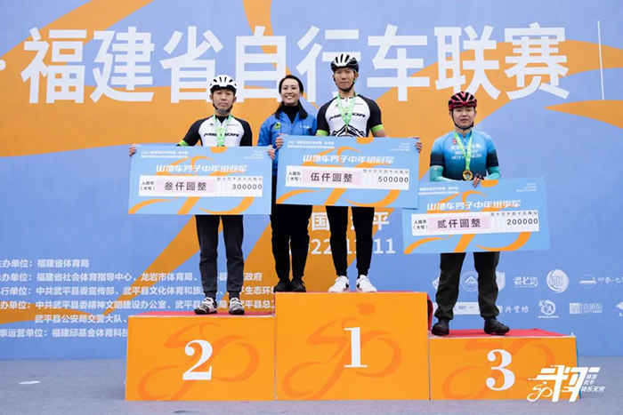 经过激烈角逐,来自厦门HotClub&弘义联合国队的唐笑摘得公路车男子中年组桂冠;来自美利达挑战者车队龙岩战队的曹建华摘得山地车男子青年组冠军;来自美利达挑战者车队龙岩战队的林卫中获得山地车男子中年组的冠军;来自泉州好骑单车的庄瑾菁获得山地车女子大众组的冠军。