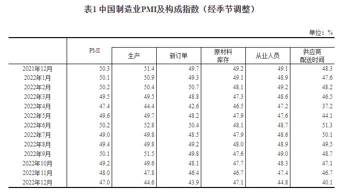 12月份,制造业采购经理指数(PMI)为47.0%,比上月下降1.0个百分点,低于临界点,制造业生产经营景气水平较上月有所回落。