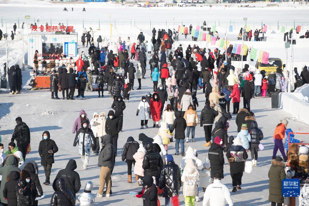 1月1日,游客在哈尔滨松花江冰雪嘉年华园区游玩。