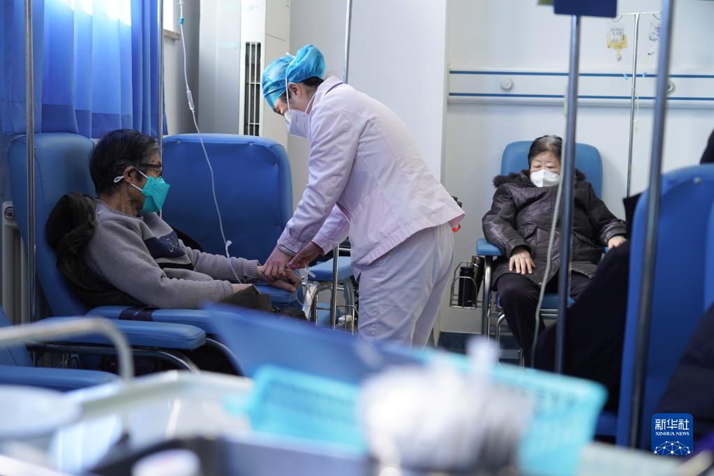 1月4日,护士在太阳宫社区卫生服务中心输液室工作。 当前,北京市积极推进分级诊疗,优化对新冠病毒感染者的救治能力。各等级医疗机构间打通双向转诊通道,根据患者病情,将疑难、危重症患者转至二、三级医疗机构,轻症、康复期和一般性治疗的患者转至社区卫生服务中心等一级医疗机构。同时,各社区卫生服务中心通过加大人员培训、药品储备以及三级医院专家坐诊、远程会诊等方式提升基层救治水平。 新华社记者 陈钟昊 摄