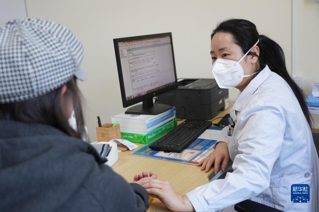 1月4日,太阳宫社区卫生服务中心医生司玲在为一位患者把脉。