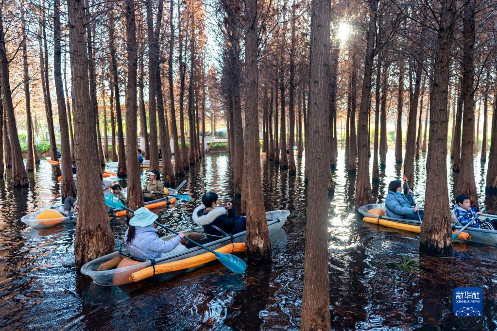 近期,云南省昆明市海洪湿地公园的水杉迎来观赏季,吸引不少游客前来游览。昆明海洪湿地公园位于滇池北岸、盘龙江入湖口西侧,是滇池的一道湖滨生态屏障。