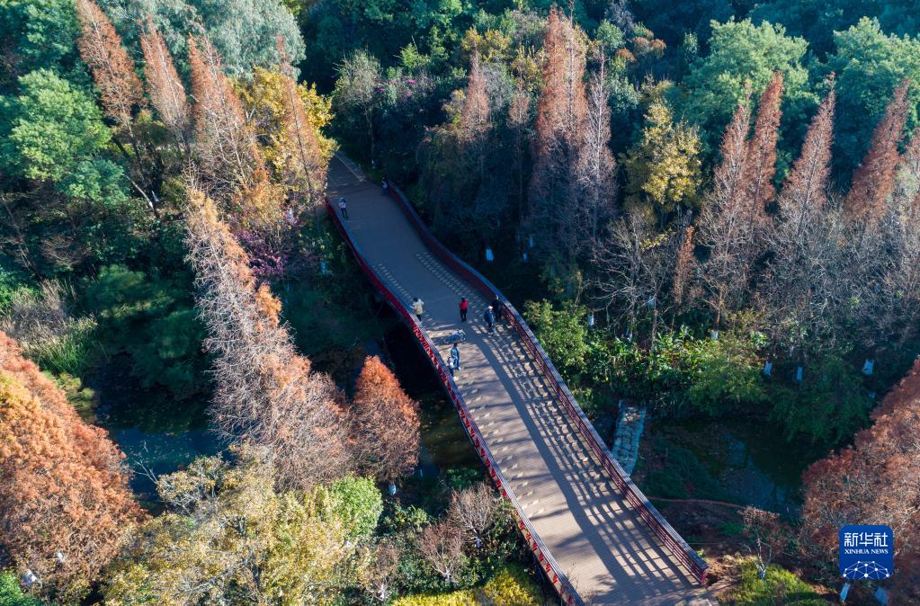 近期,云南省昆明市海洪湿地公园的水杉迎来观赏季,吸引不少游客前来游览。昆明海洪湿地公园位于滇池北岸、盘龙江入湖口西侧,是滇池的一道湖滨生态屏障。