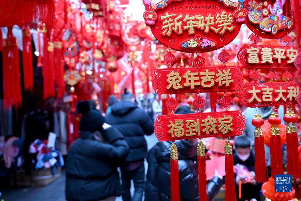 春节临近,年味渐浓,不少合肥市民来到城隍庙市场选购春联、灯笼等新春饰品,迎接新春佳节的到来。