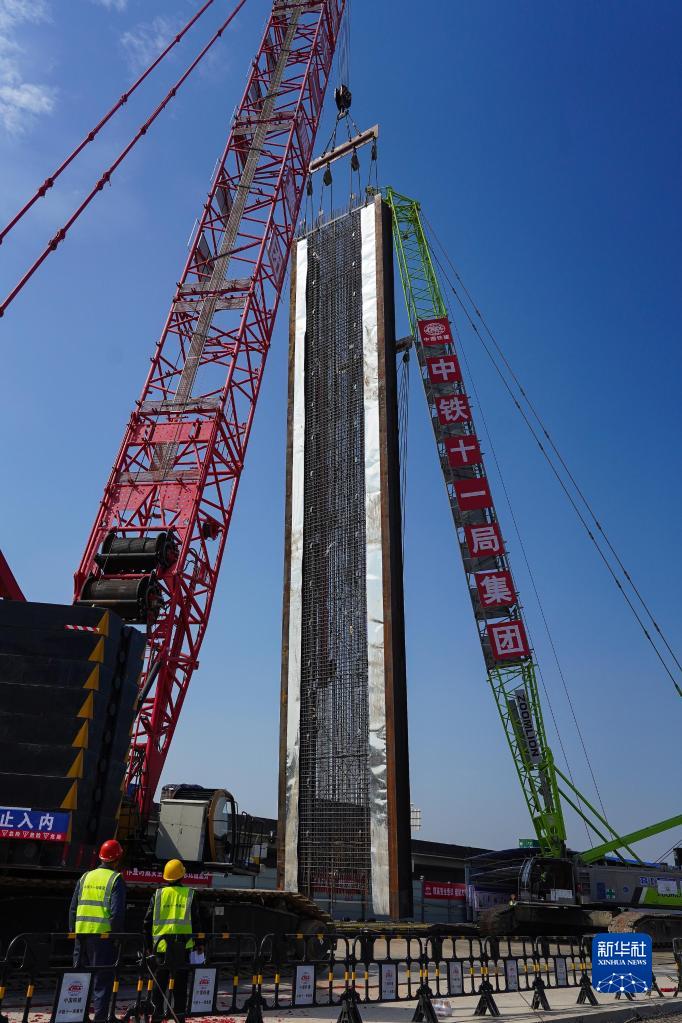 当日,由中铁十一局承建的深(深圳)江(江门)铁路深莞隧道西段出口明挖隧道开始地连墙施工,吊装的首幅地连墙钢筋笼长36.5米,重量约65吨。