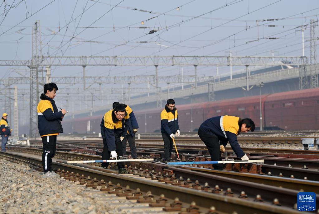 1月6日,“大学生工区”的职工在天津市北辰区北仓站内进行作业。