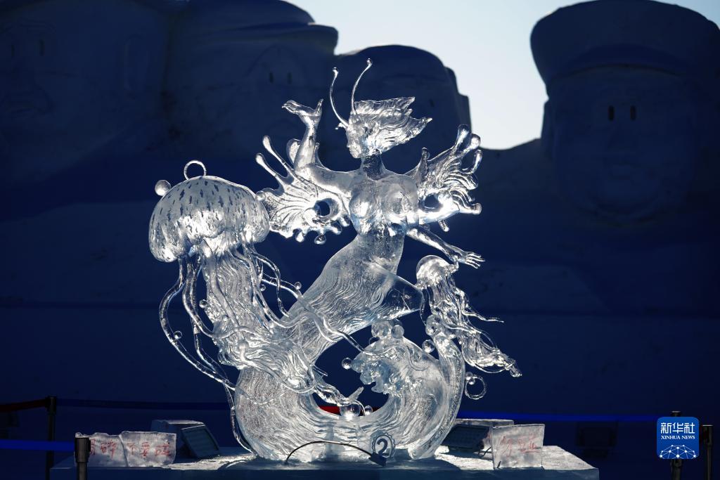这是在比赛中获得二等奖的冰雕作品《舞者》(1月5日摄)。