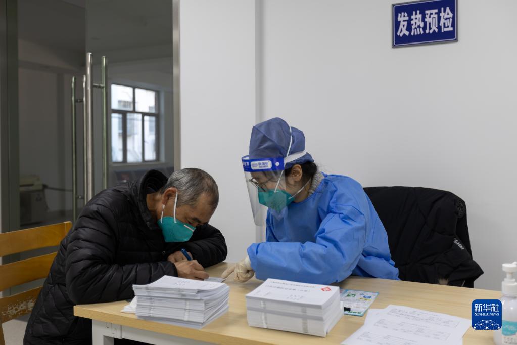 1月8日,患者在上海市闵行区颛桥社区卫生服务中心发热哨点登记信息。新华社记者 王翔 摄