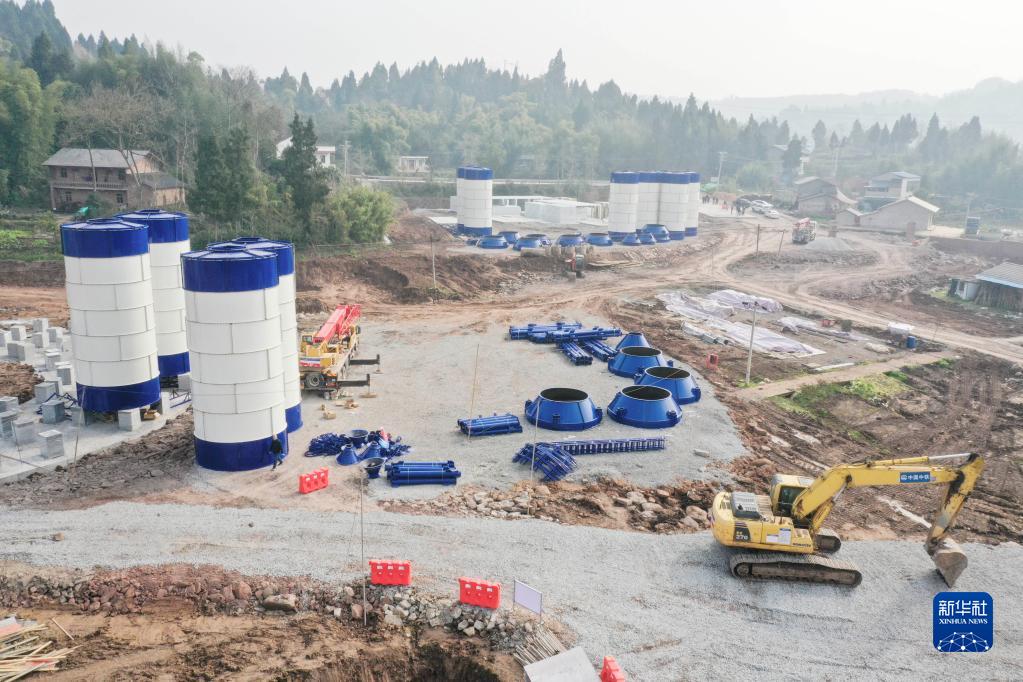这是1月8日在重庆市大足区境内拍摄的成渝中线高铁建设施工现场。 当日,成渝中线高铁重庆段站前4标首根钻孔桩率先开钻,标志着成渝中线高铁全线主体工程进入实质性开工阶段。 成渝中线高铁正线全长292公里,设计时速350公里,部分区段预留进一步提速条件,建设工期5年。 新华社记者 唐奕 摄