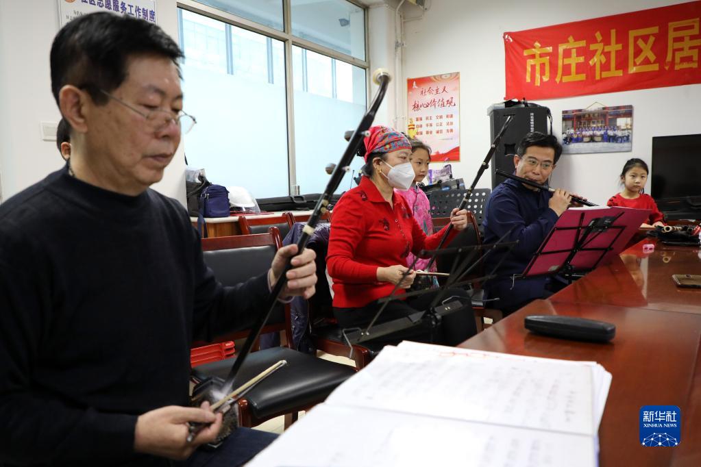 1月9日,在石家庄市市庄社区居委会群众活动中心,音乐家张勇(右二)在指导文艺爱好者练习民乐演奏。 河北省石家庄市充分利用文化资源,着力打造群众身边的人文公共空间,以文艺创作、展播、交流等形式,大力开展“家门口”的文化艺术普及、优秀文化传承等活动,不断提升城市文化品位。 石家庄市在街头巷尾、社区周边设立52家涵盖书法、美术、戏曲、写作、音乐等多个门类的工作室,免费向群众开放,让广大市民在茶余饭后就能体验丰富多彩的文化生活。新华社记者 骆学峰 摄 |
