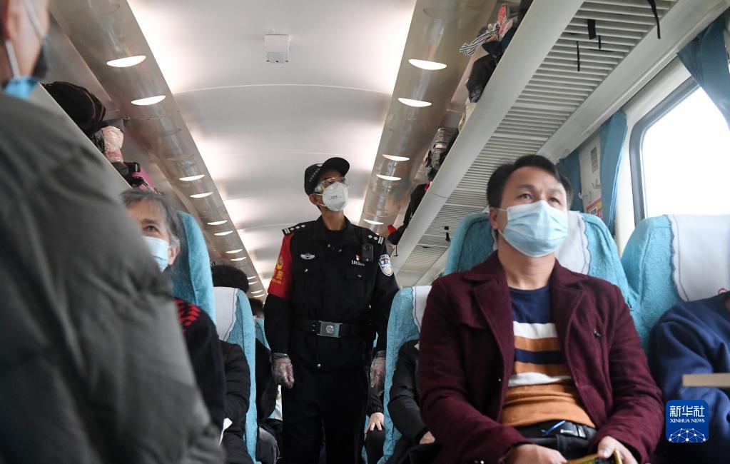 1月10日,覃业民在车厢内巡逻。