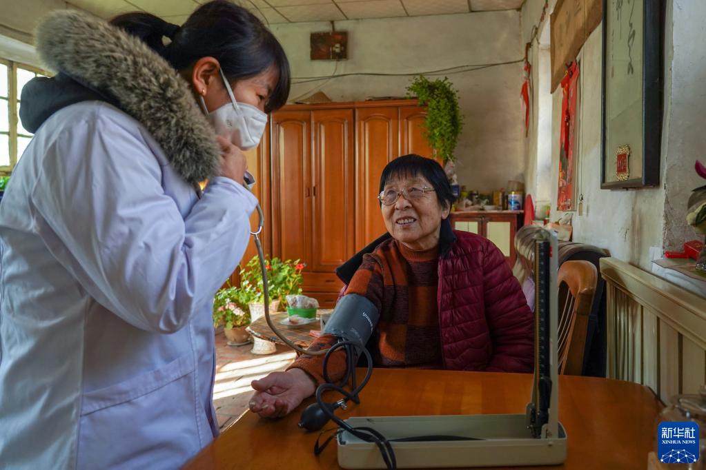 1月10日,山东省济南市长清区大崮山村卫生室全科医生王玉新上门为74岁的王成兰老人检查身体。 为加强农村地区医疗健康服务,山东对农村地区老年人深入开展健康摸排,组建3.2万个家庭医生团队,同时利用医联体、医共体和城市医疗集团,县乡村三级医疗机构协同联动,保障农村群众用医用药。 新华社记者 朱峥 摄 |
