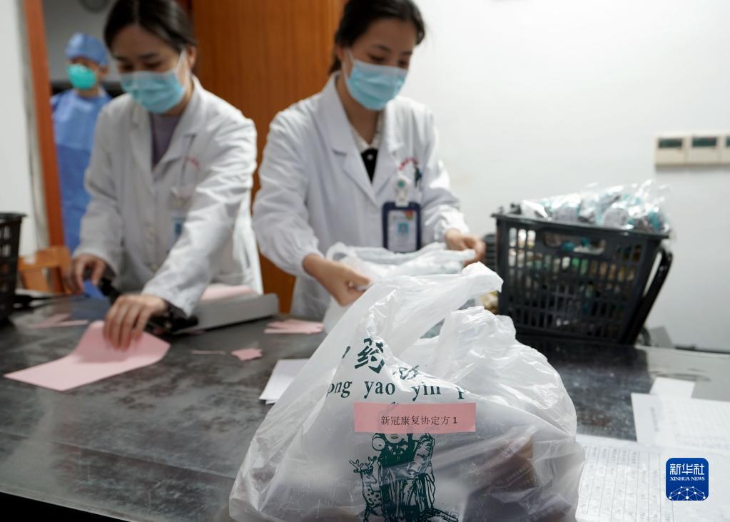 1月10日,中药师在青浦区中医医院药房工作。 近日,针对部分新冠病毒感染者转阴后仍有咳嗽、乏力、气短、失眠等问题,上海多家医院开设新冠康复门诊。青浦区中医医院1月7日起开设新冠康复中医门诊,融合中医、康复等学科治疗措施,发挥中医药独特作用,帮助患者康复。 新华社记者 刘颖 摄