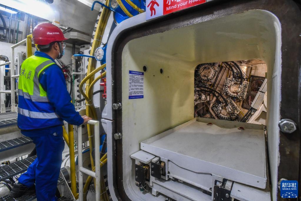 1月11日,技术人员在“大道先锋号”盾构机始发前检查刀头状态。