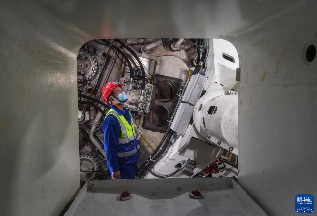 1月11日,技术人员在“大道先锋号”盾构机始发前检查刀头状态。