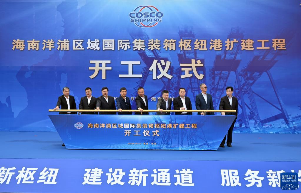 当日,海南洋浦区域国际集装箱枢纽港扩建工程开工仪式在洋浦国际集装箱码头举行。