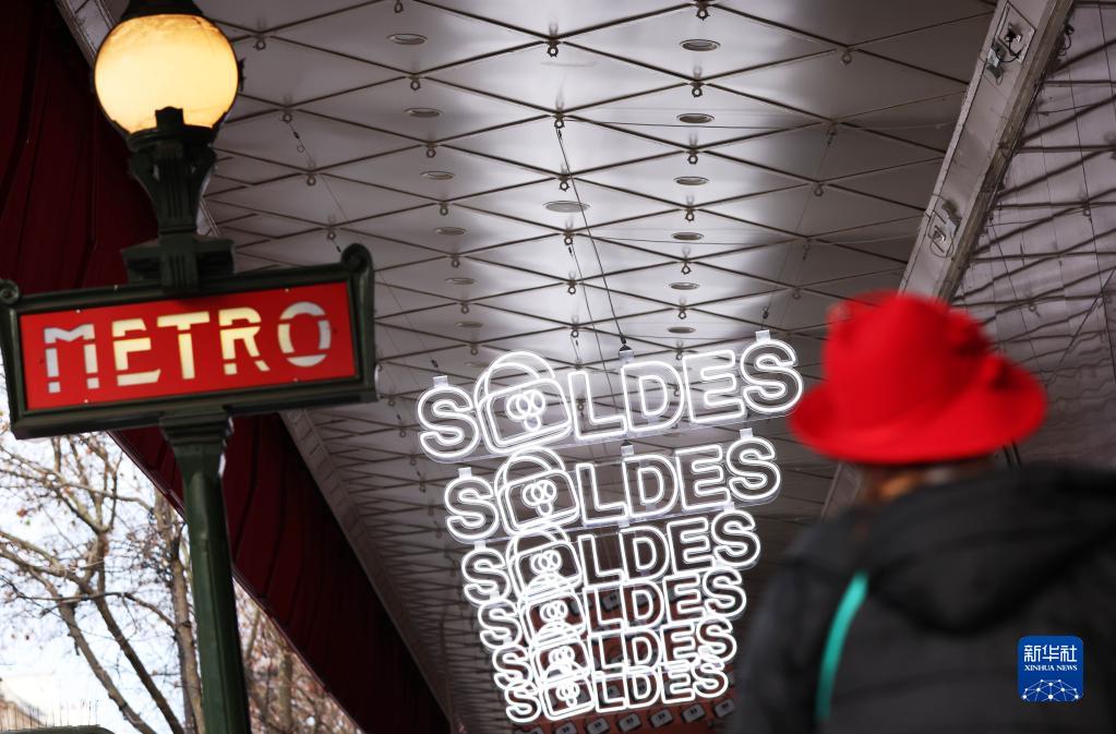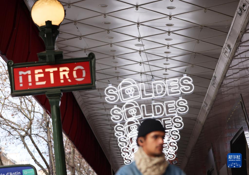 这是1月11日在法国巴黎街头拍摄的打折季广告。 当日,法国2023冬季打折季拉开帷幕。打折季将持续四周,至2月7日结束。 新华社记者 高静 摄