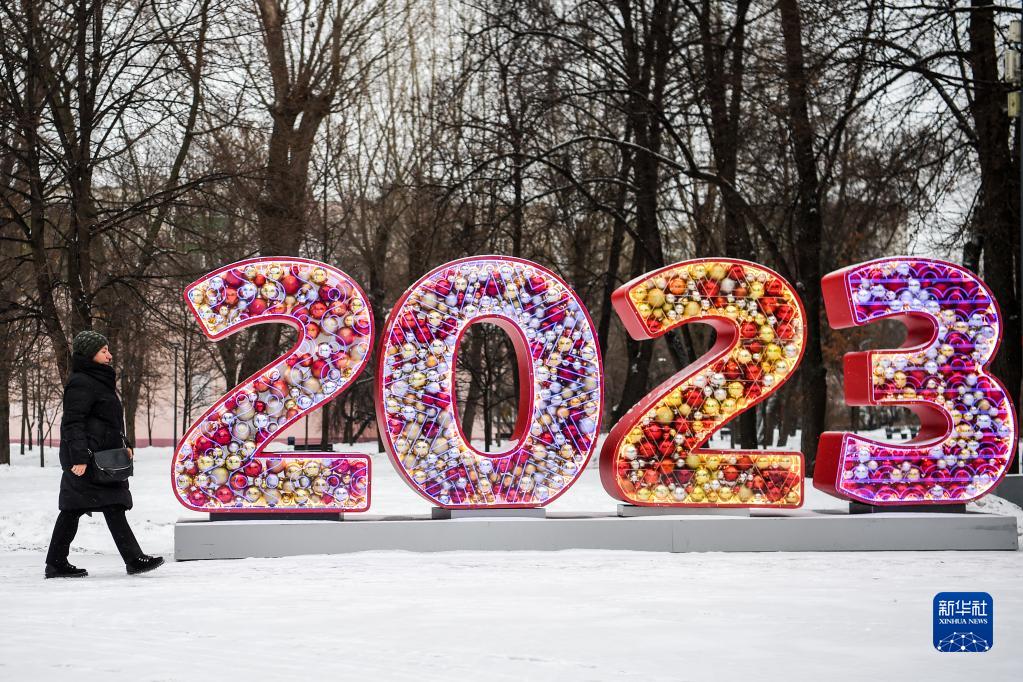 12月27日,市民经过俄罗斯首都莫斯科的一处新年装饰。