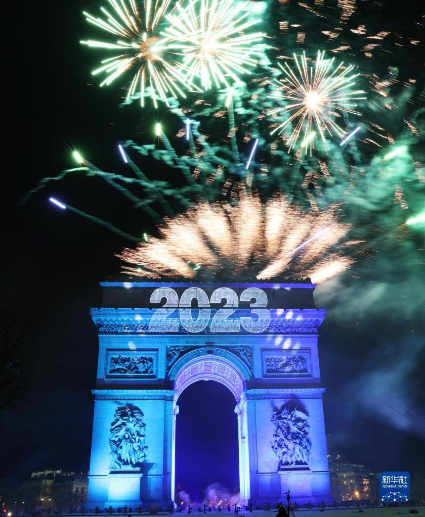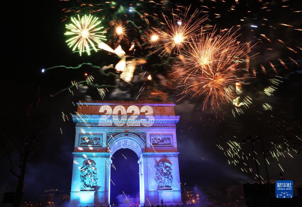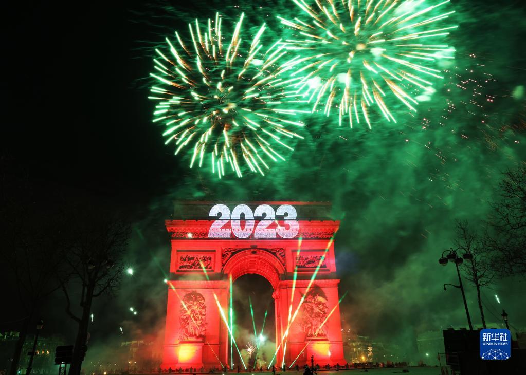 这是2023年1月1日在法国巴黎凯旋门拍摄的新年焰火。 辞旧迎新之际,人们在世界各地迎接新的一年。 新华社记者 高静 摄