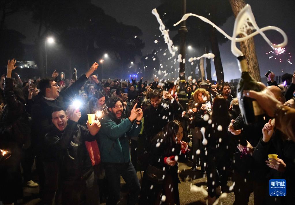 2023年1月1日,人们在意大利罗马庆祝新年。 辞旧迎新之际,人们在世界各地迎接新的一年。 新华社记者 金马梦妮 摄