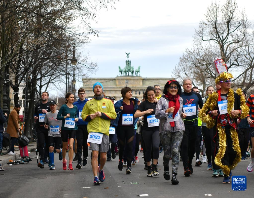 1月1日,人们在德国柏林菩提树下大街参加新年跑活动。 当日,德国柏林举行新年跑活动,庆祝新年到来。 新华社记者 任鹏飞 摄