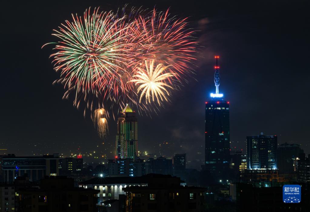 这是2023年1月1日在肯尼亚内罗毕拍摄的新年烟花。 辞旧迎新之际,人们在世界各地迎接新的一年。 新华社记者 韩旭 摄