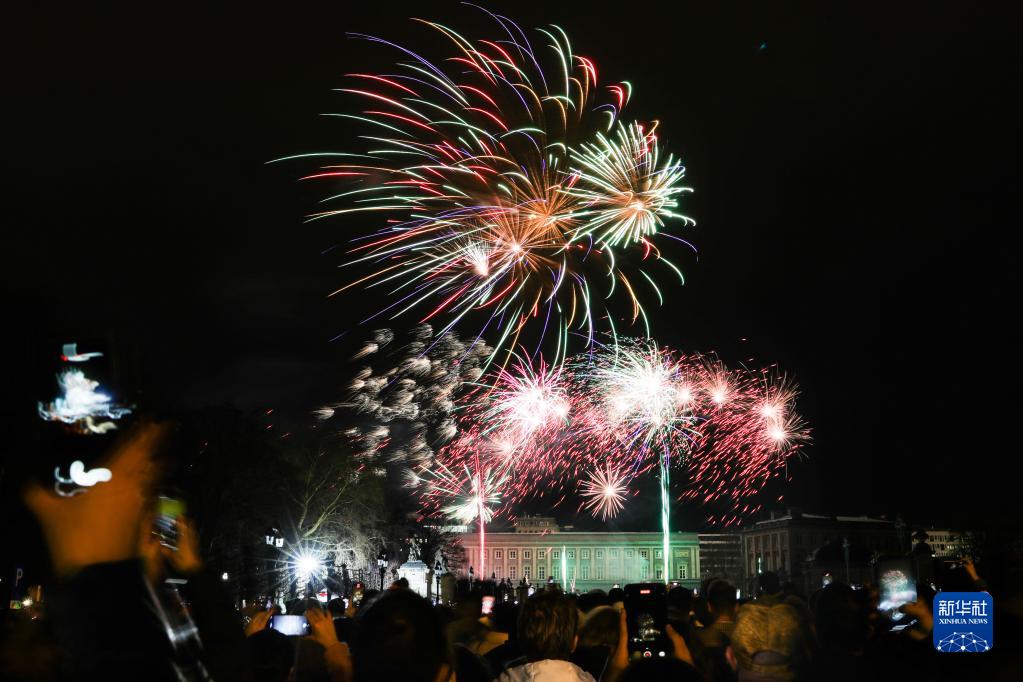 这是2023年1月1日在比利时布鲁塞尔拍摄的新年烟花。 辞旧迎新之际,人们在世界各地迎接新的一年。 新华社记者 郑焕松 摄