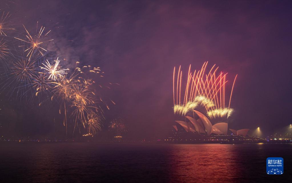 这是2022年12月31日在澳大利亚悉尼港拍摄的烟花表演。 辞旧迎新之际,人们在世界各地迎接新的一年。 新华社记者 白雪飞 摄