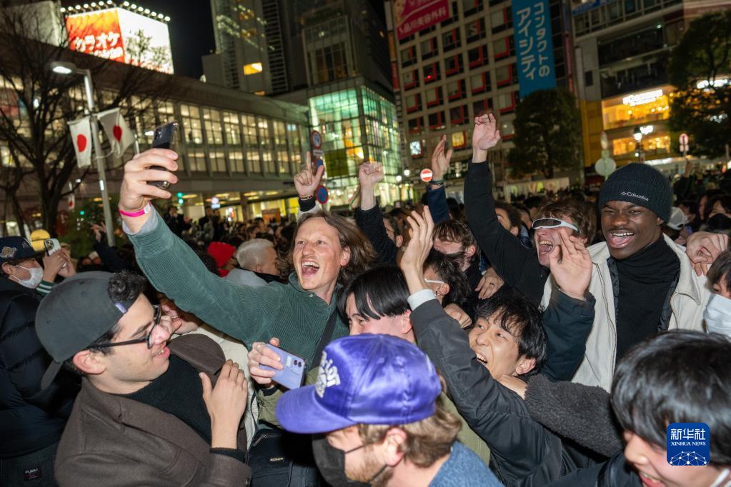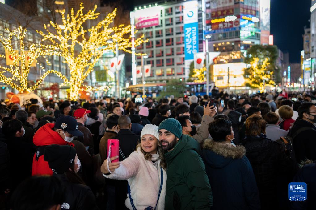 2023年1月1日,人们在东京涩谷共庆新年。 辞旧迎新之际,人们在世界各地迎接新的一年。 新华社记者 张笑宇 摄