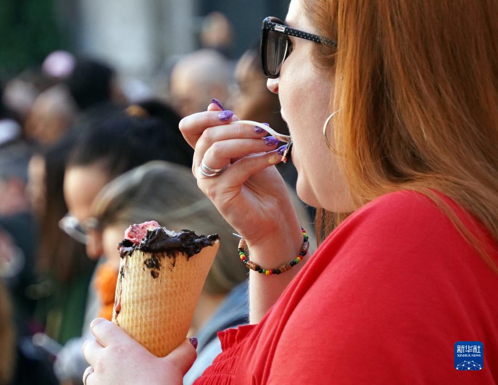 12月25日,一名女子在意大利罗马吃冰淇淋。 受暖流影响,意大利全国气温在圣诞节期间超往年同期,中部和南部地区气温或超过50年来最高水平。 新华社记者 金马梦妮 摄