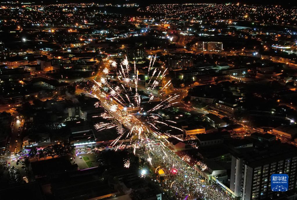 2022年12月31日,人们在纳米比亚首都温得和克迎接新年。 辞旧迎新之际,人们在世界各地迎接新的一年。 新华社记者 陈诚 摄
