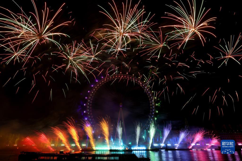 这是2023年1月1日在英国伦敦拍摄的新年烟花。