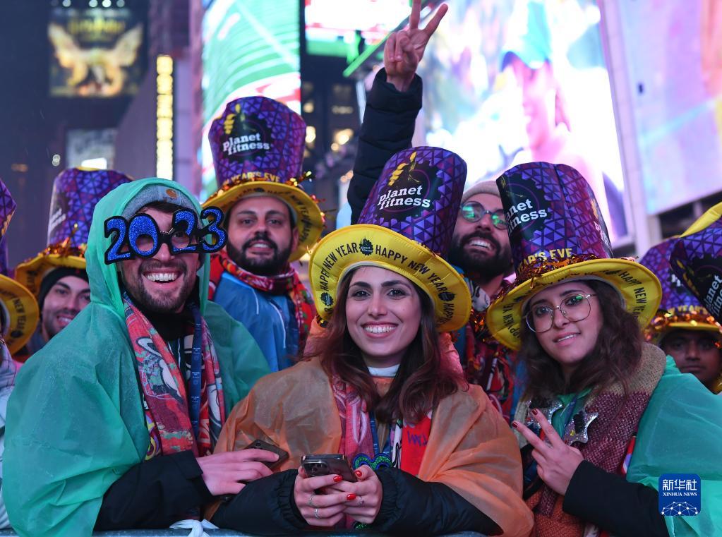 2022年12月31日,人们在美国纽约时报广场参加跨年活动。