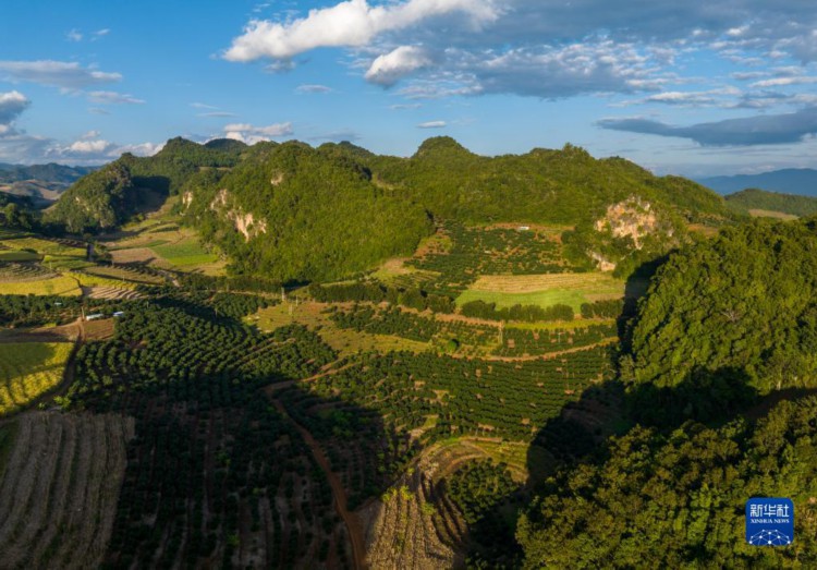 从空中俯瞰云南省孟连县牛油果种植基地(无人机照片,2022年11月17日摄)。