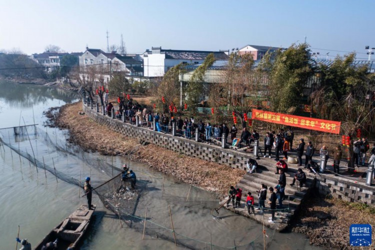 当日,浙江省湖州市吴兴区东林镇的水乡“鱼汤饭 品丰年”迎春活动在泉庆村举办,活动包括清塘捕鱼,鱼汤饭、鱼圆鱼饼、刺毛圆子、手作年糕等年味美食的制作及品尝,还有歌舞表演、非遗柳编现场展示、书法爱好者写春联送祝福等。