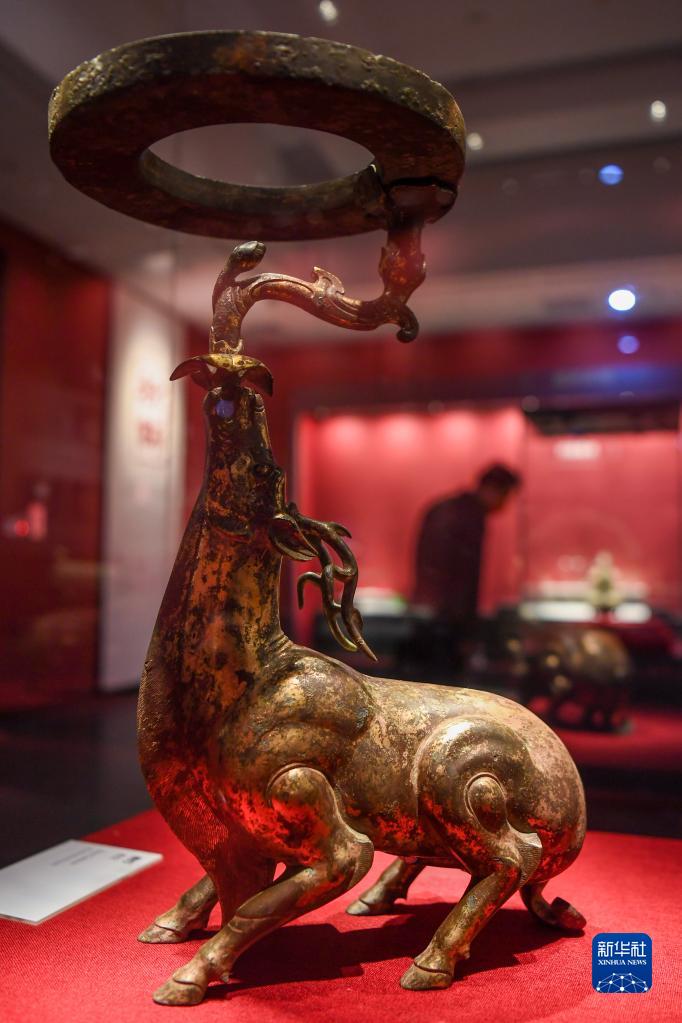 这是1月12日在大云山汉王陵博物馆内拍摄的西汉“鹿灯”。 当日,位于江苏省淮安市盱眙县的大云山汉王陵博物馆正式向公众开放,该馆建筑面积约1.2万平方米,展出文物一千余件(套),通过“朝、国、王、陵、城”的展览主线,多角度、全方位呈现大云山汉王陵遗址的考古发掘研究成果。 新华社记者 李博 摄 |