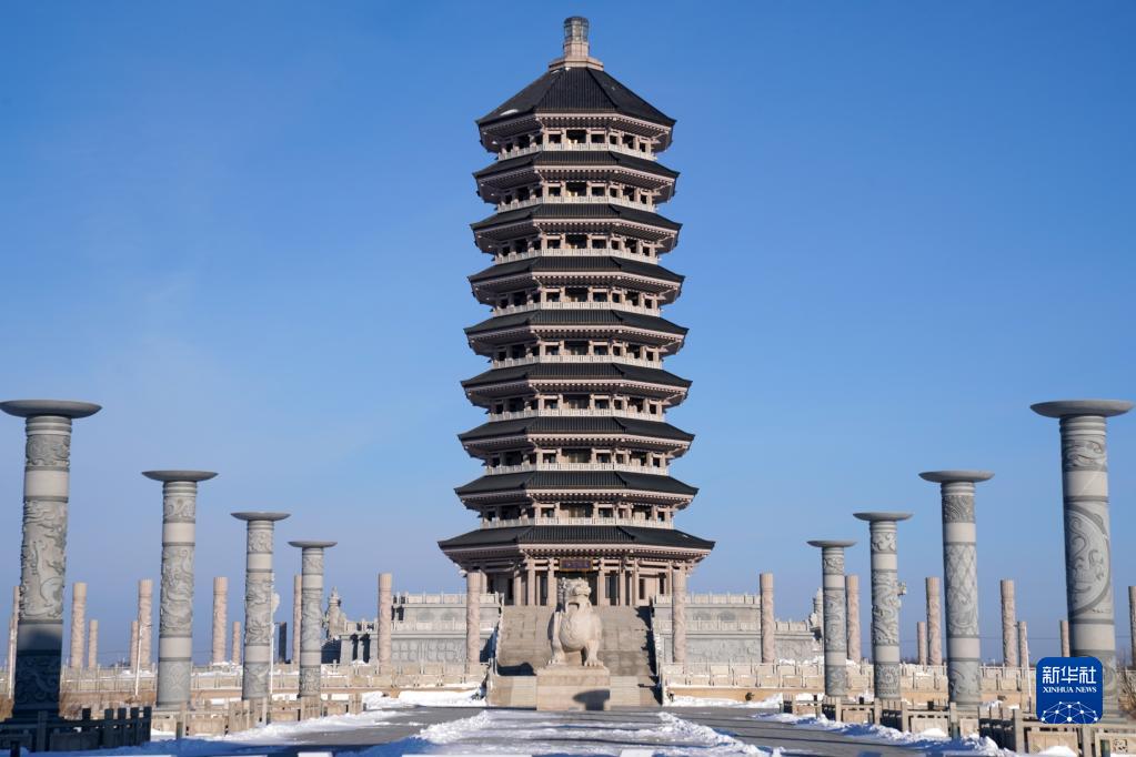 1月10日拍摄的抚远市东极宝塔。 新华社记者 王建威 摄