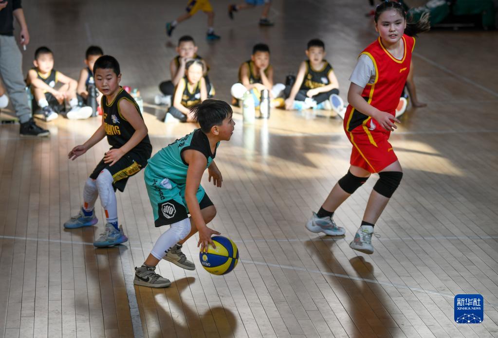 小学员们在新疆广汇小飞虎篮球训练营内训练(1月14日摄)。