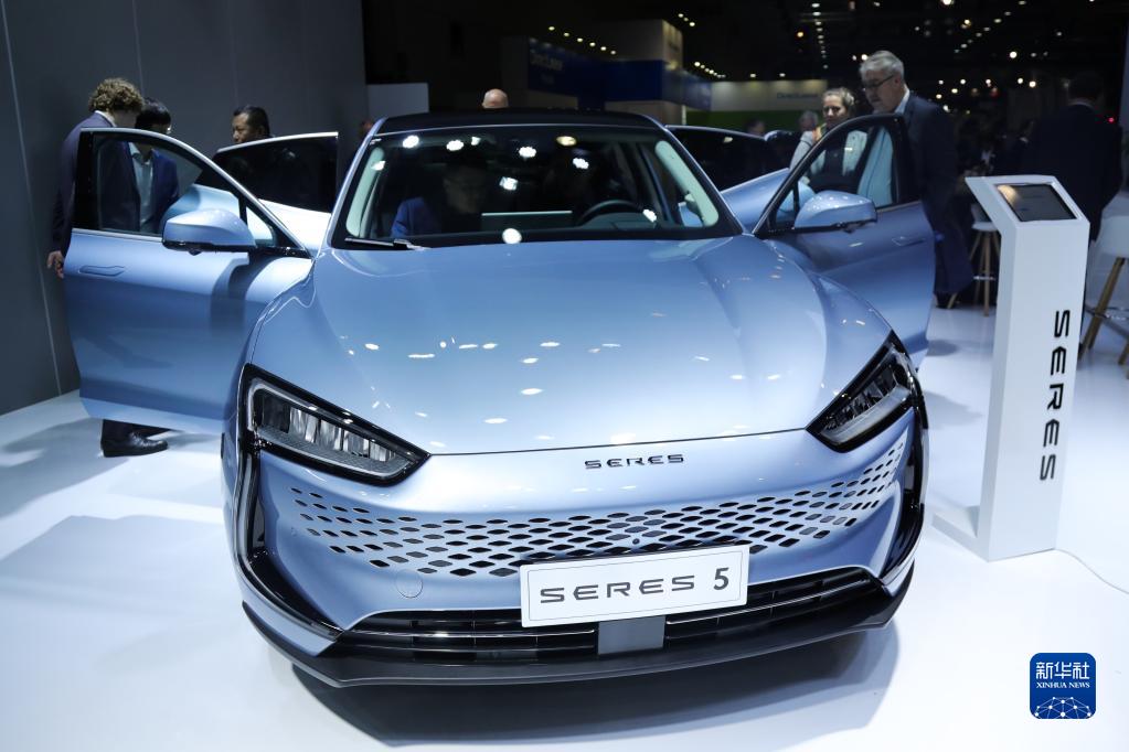 1月13日,人们在比利时布鲁塞尔车展媒体开放日上参观赛力斯5电动汽车。 第100届比利时布鲁塞尔车展13日迎来媒体开放日,这是该展览疫情后首次线下举办。比亚迪、上汽、北汽、东风小康、赛力斯等中国品牌携高端车型登陆车展,其中多款电动汽车备受瞩目。 新华社记者 郑焕松 摄