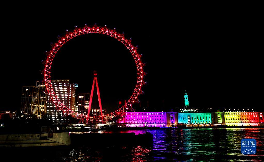 这是1月13日在英国伦敦拍摄的亮起红色灯光的“伦敦眼”。 当晚,英国伦敦地标建筑、巨型摩天轮“伦敦眼”亮起红色灯光,迎接中国农历新年的到来。 新华社记者 李颖 摄