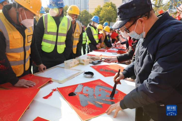 春节临近,多地组织书法志愿者走进社区、工地等场所,为人们书写春联和福字,迎接春节的到来。